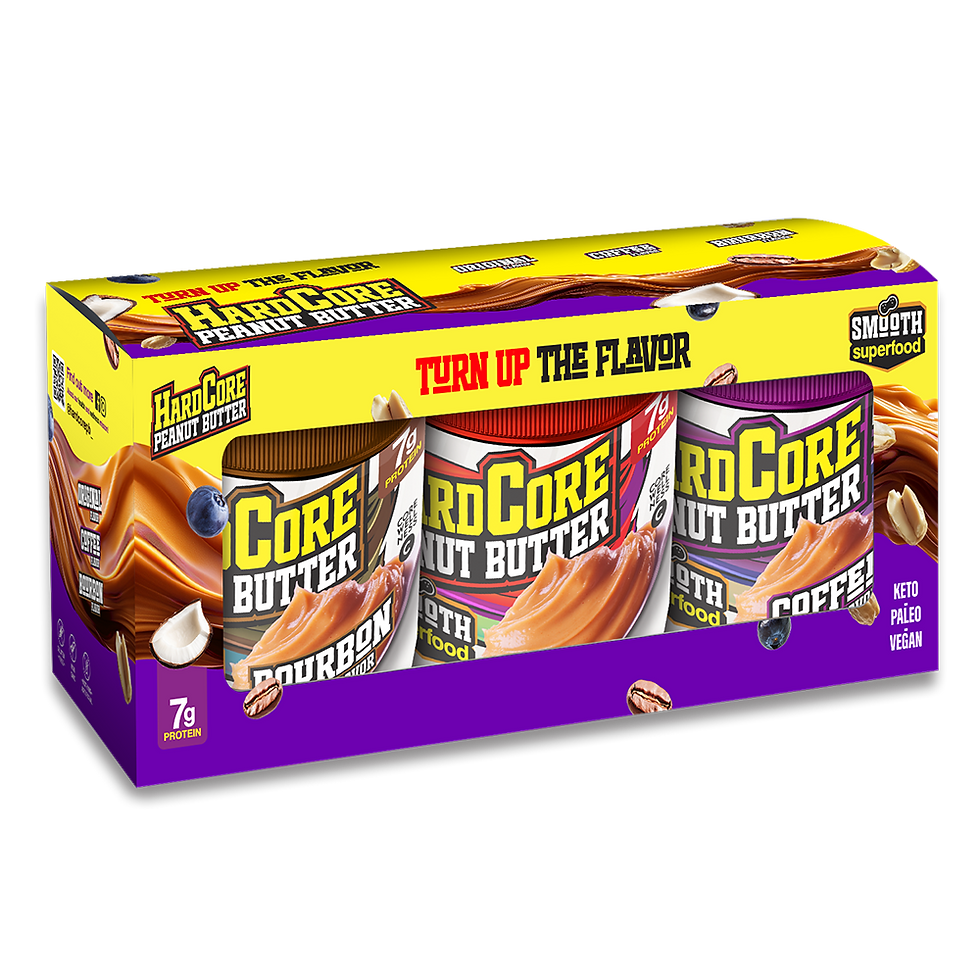 Experience all three bold flavors in one superfood-packed set. From the blueberry-rich Smooth, to the energizing Coffee Kick, to the indulgent Bourbon Bliss—each spread is crafted with nutrient-dense ingredients, clean energy, and Hardcore PB attitude. Perfect for fueling your healthy lifestyle or sharing with fellow peanut butter lovers.